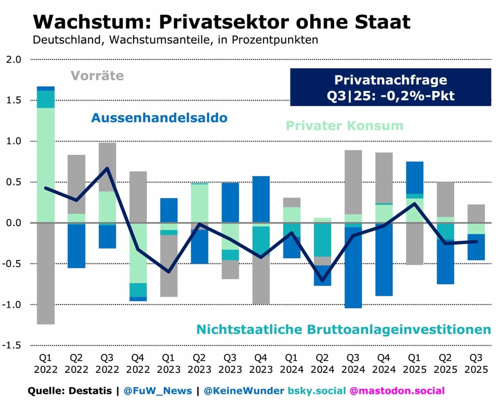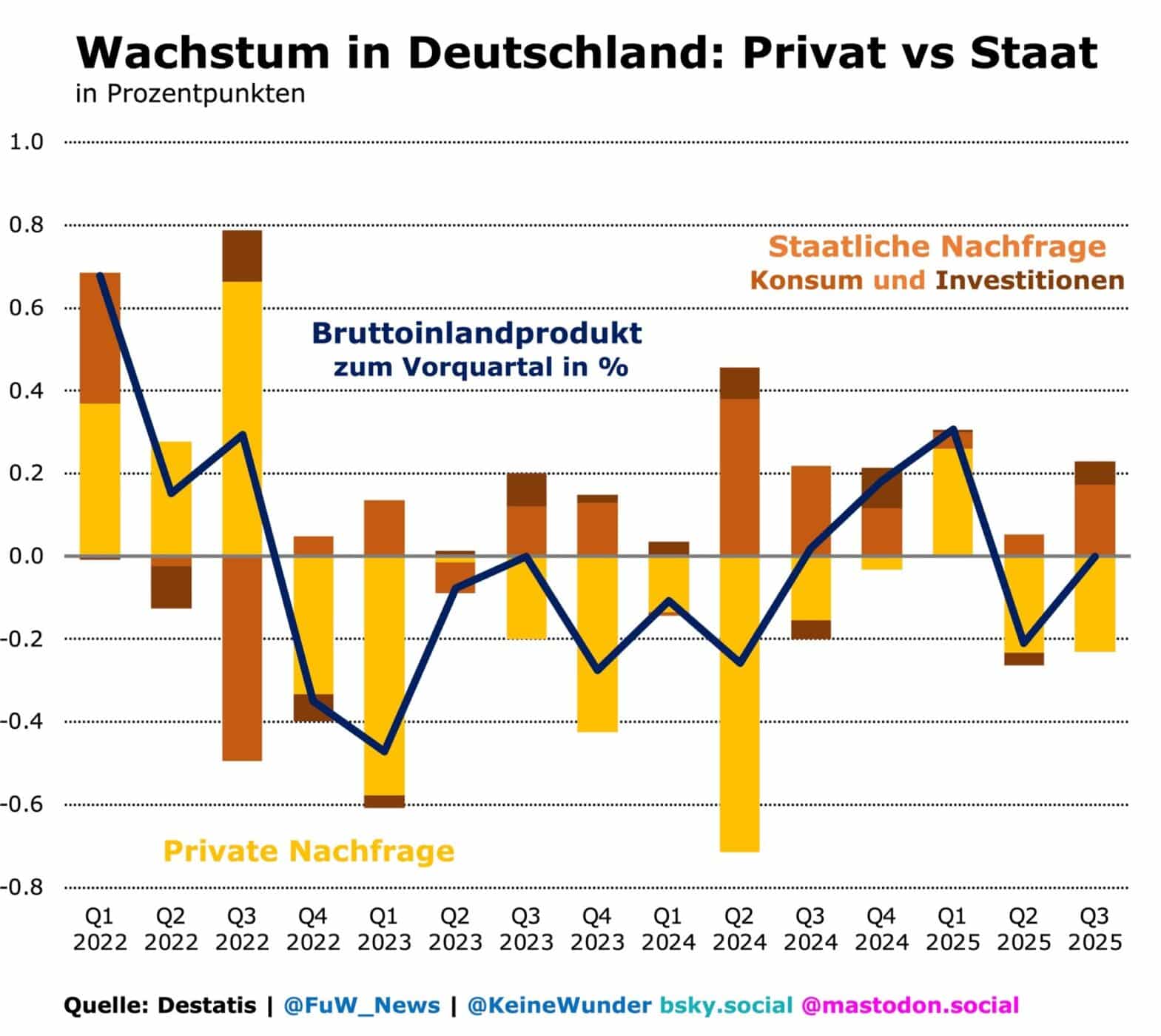 Bereits im Frühjahr rutschte die Privatwirtschaft dann jedoch zurück in die Rezession. Sie wurde im Sommer nur durch den Staat aufgefangen. Die neue Bundesregierung hatte seit dem Sommer wieder ein reguläres Budget, was zu entsprechenden Nachholeffekten in den Ausgaben führte.