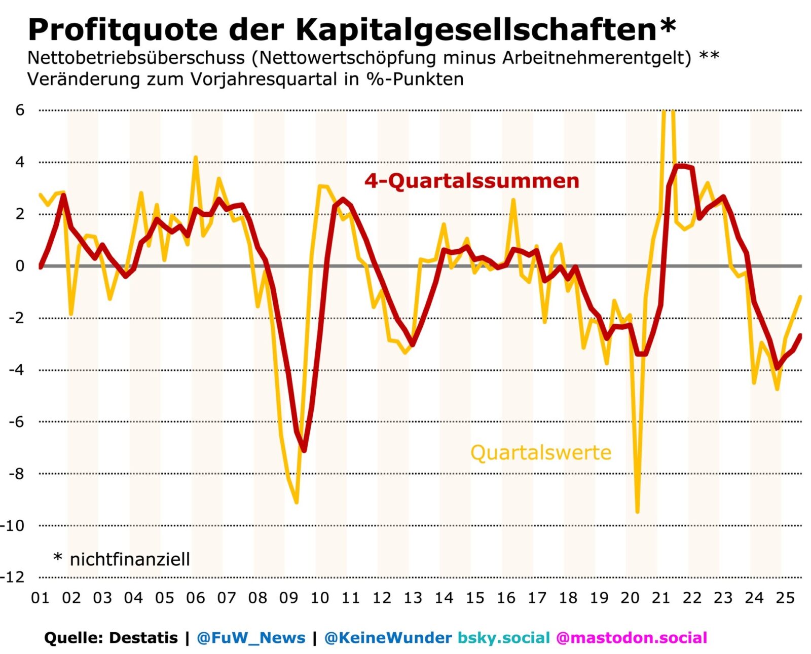 Rezessionen und Depressionen lassen mit erlahmenden Investitionen auch die Profite einbrechen. Damit sind nicht die steuerlichen Gewinne gemeint, sondern – exakter – der Überschuss der Betriebe am Standort. Er ist eher mit dem Cashflow auf Unternehmensebene zu vergleichen.