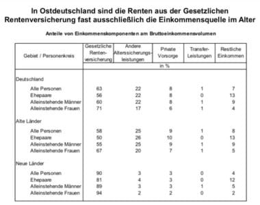 Die Datenbasis für die hier präsentierte Darstellung der Einkommenssituation der älteren Bevölkerung ist die repräsentative Studie „Alterssicherung in Deutschland (ASID)“. Sie wurde zuletzt für das Jahr 2015 durchgeführt. Quelle: Rentenversicherungsbericht 2017, Bundestags-Drucksache 19/140 vom 30.11.2017, S. 18. Tabelle: Aktuelle Sozialpolitik.